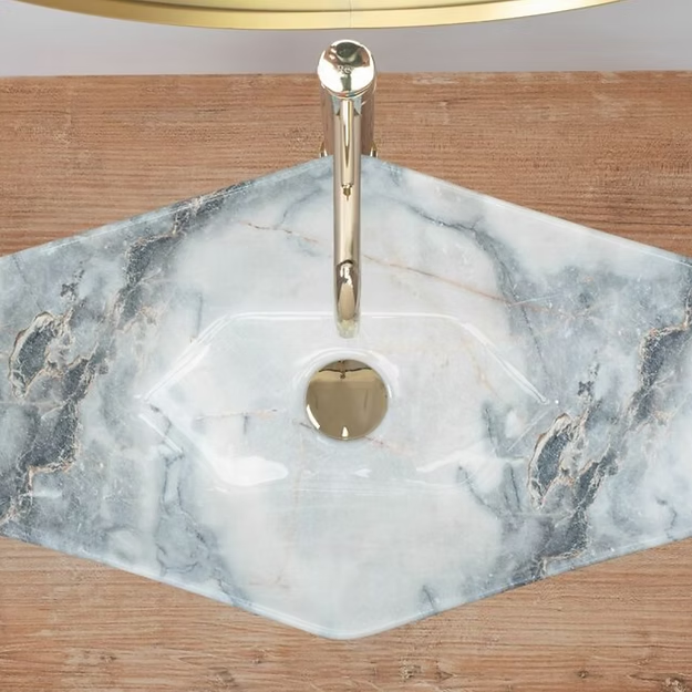 Introducing the stunning Whisper Covenance Countertop Basin, the perfect addition to any modern bathroom. Measuring 570x370x120mm, this basin comes in a beautiful marble finish available in three elegant colors: green, white, and gold. Crafted with the highest quality materials, this basin is a perfect match for the Covenance range, providing a cohesive and stylish look to your bathroom. Its sleek and minimalist design will add a touch of luxury to your space, while its spacious dimensions ensure practicality and convenience. Elevate your bathroom with the Whisper Covenance Countertop Basin and enjoy both functionality and sophistication in one beautiful package.